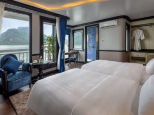 Entrance fees, sightseeing fee, kayaking, rowing boat English/ Vietnamese speaking guide Luxury accommodation, shower Welcome drink Meals onboard: 02 lunches, 01 dinner and 01 breakfast Insurance on-board Fishing equipment