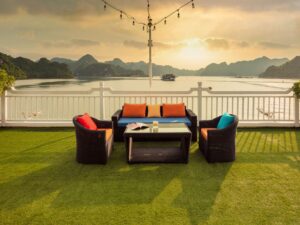 Back to Le Journey Cruises and relax on cruise. It’s time for Sunset in Lan Ha Bay. There’s something magical about sunsets. It’s not only the colors but the feeling, the atmosphere, the temperature. The way you feel at a certain moment. Enjoy our “Sunset Party “and “Happy Hour Deal
