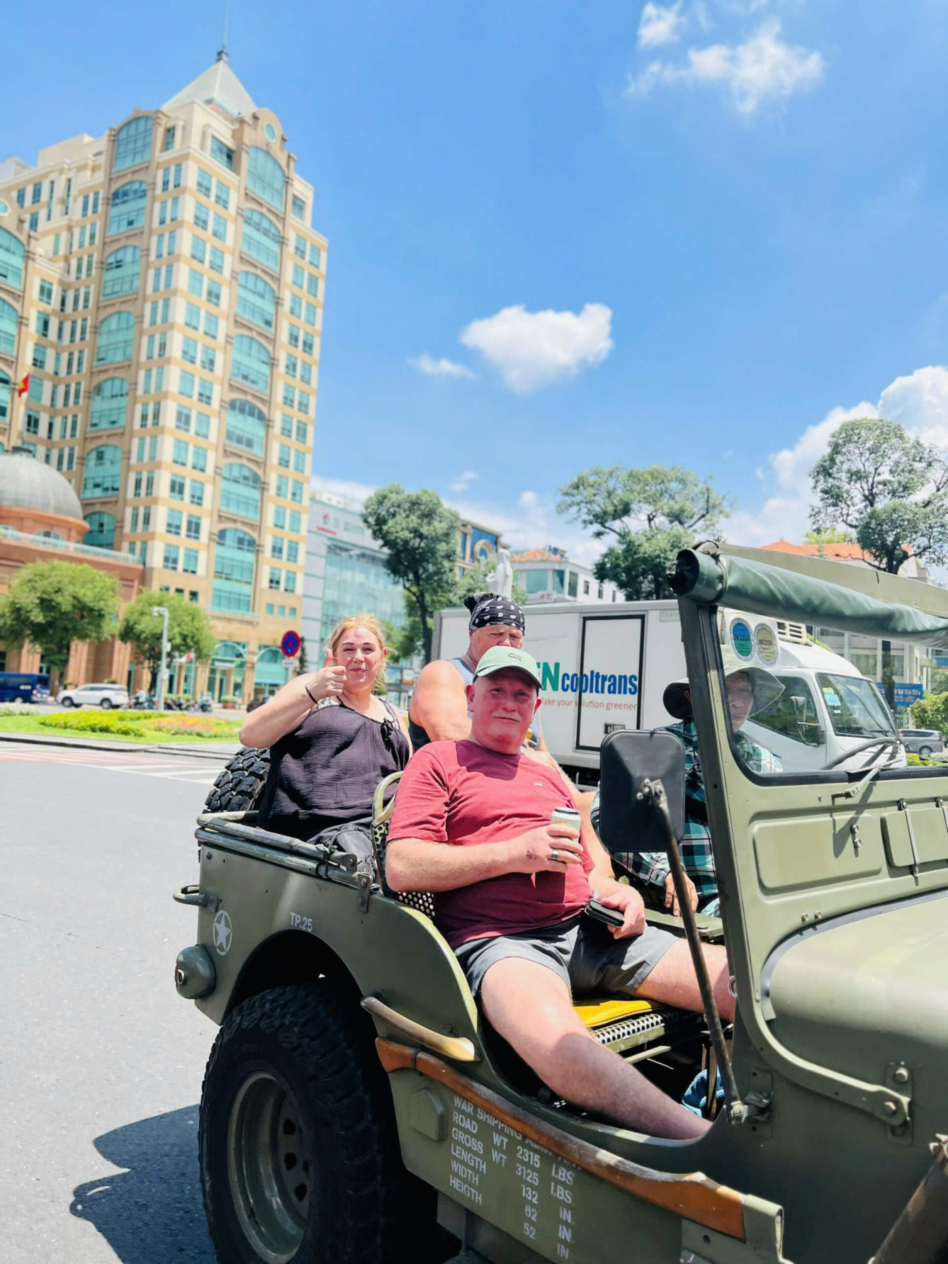 Hướng dẫn viên sẽ đón bạn tại khách sạn để bắt đầu chuyến phiêu lưu nửa ngày bằng xe Jeep mui trần, cách tuyệt vời nhất để khám phá Sài Gòn theo cách đầy thú vị và đậm chất địa phương.